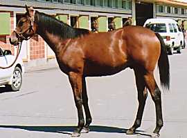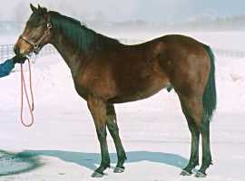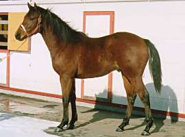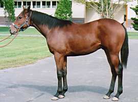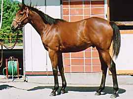 | ビッグレッドファーム明和に滞在中。愛嬌のある雰囲気でしたが、ここ1、2ヶ月の間に、えらく大人びてきた感じです。馬体重の数字以上にどっしりしてきました。それでも、放牧地での動きは俊敏。岡田は「運動神経に優れているからね」と述べ、普通の父の産駒とは違うとでもいいたげでした。(7/10) | |